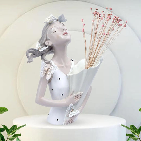 This unique decorative sculpture not only adds sophistication to your decor but also serves as a functional flower holder, giving you a special space to display your favorite arrangements. Its premium resin material ensures durability and a refined finish that withstands time and daily use.