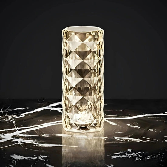 With its faceted crystal-style design, this lamp transforms light into a decorative feature. The textured surface enhances colour diffusion, creating a soft yet vibrant glow that elevates the room even when used as a subtle accent light.